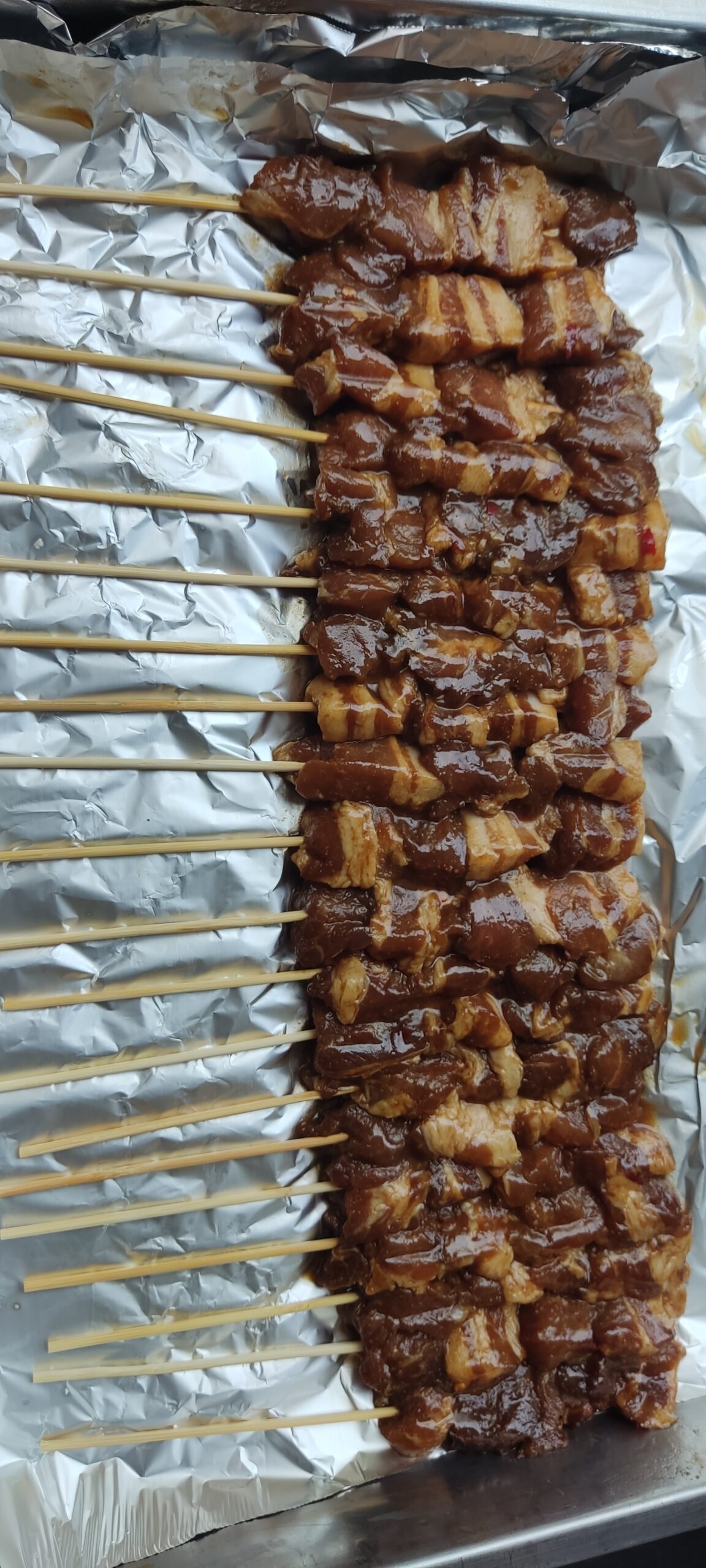 De saté Babi wordt gemaakt van de procureur en speklap, gemarineerd in een overheerlijke authentieke Indische marinade.